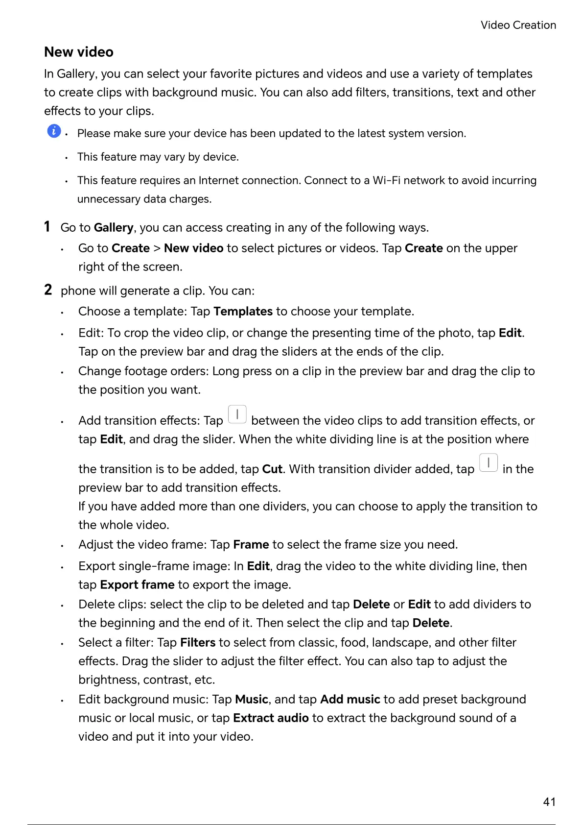 • Go to Create > New video to select pictures or videos. Tap Create on the upper