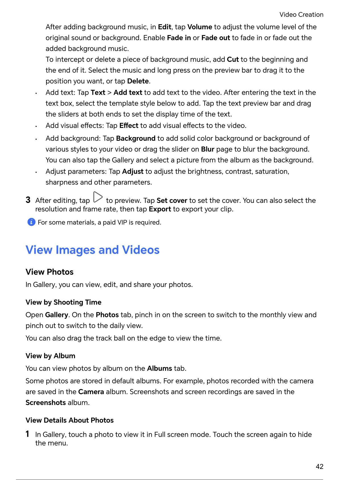 • Add text: Tap Text > Add text to add text to the video. After entering the text in the