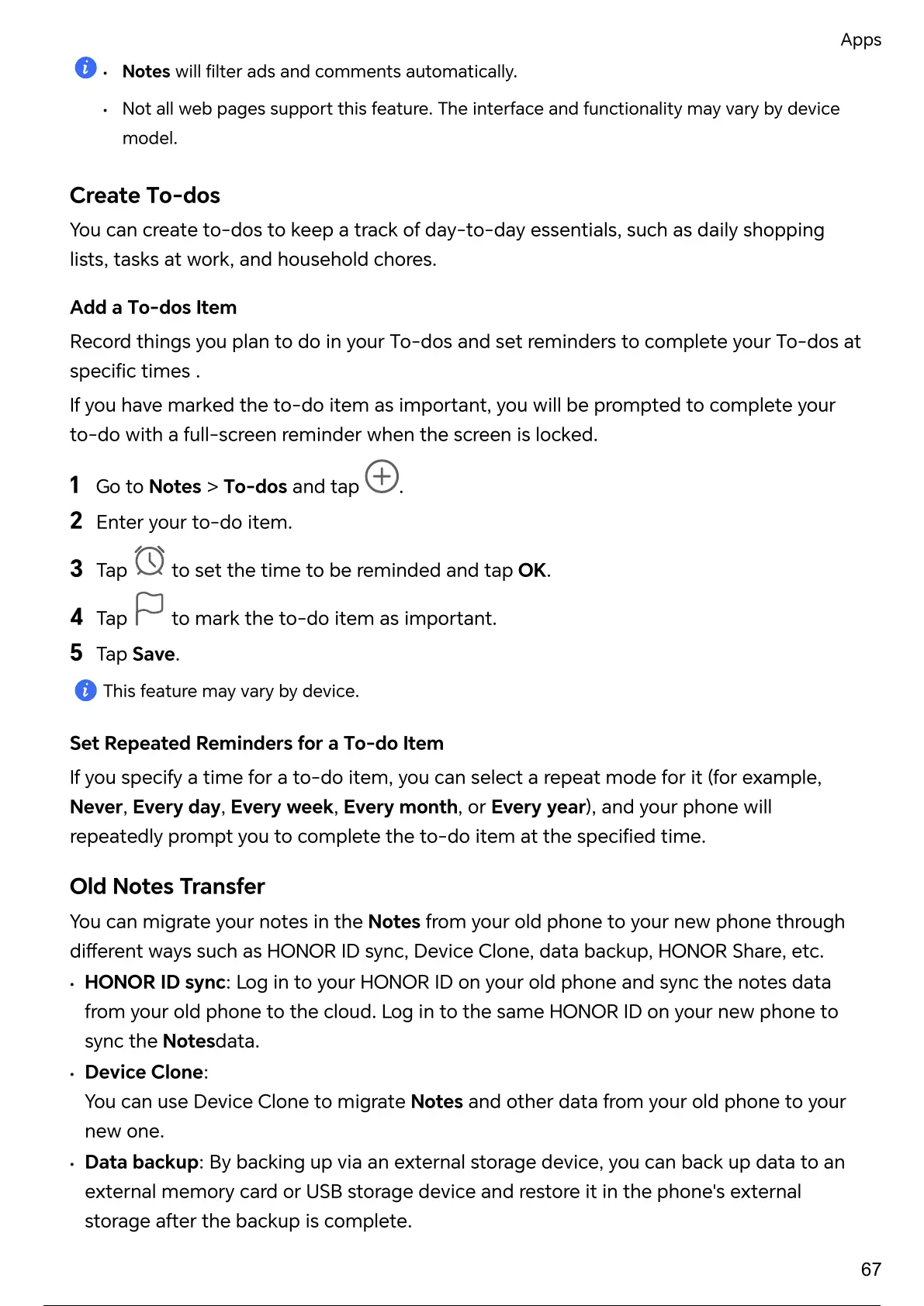 • HONOR ID sync: Log in to your HONOR ID on your old phone and sync the notes data