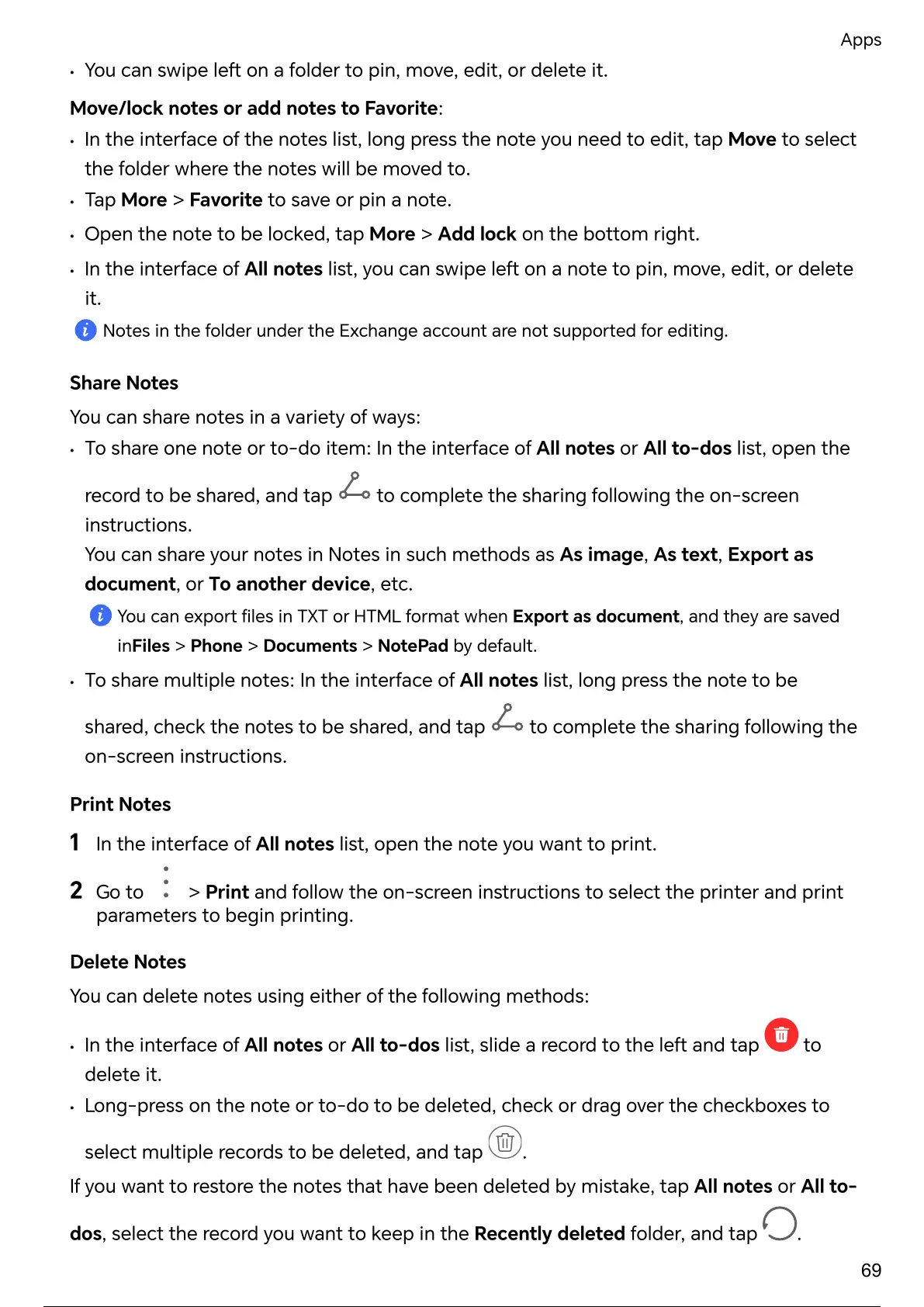 If you want to restore the notes that have been deleted by mistake, tap All notes or All to-