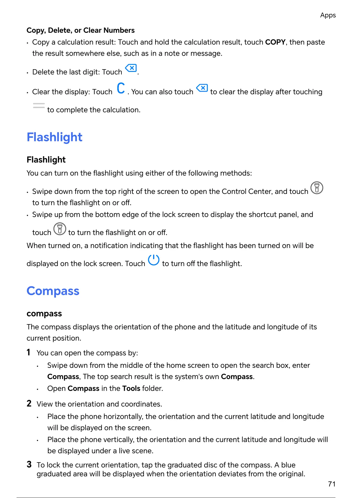 3 To lock the current orientation, tap the graduated disc of the compass. A blue