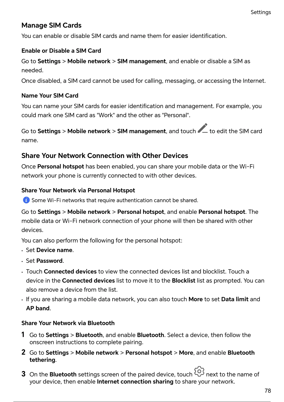 2 Go to Settings > Mobile network > Personal hotspot > More, and enable Bluetooth