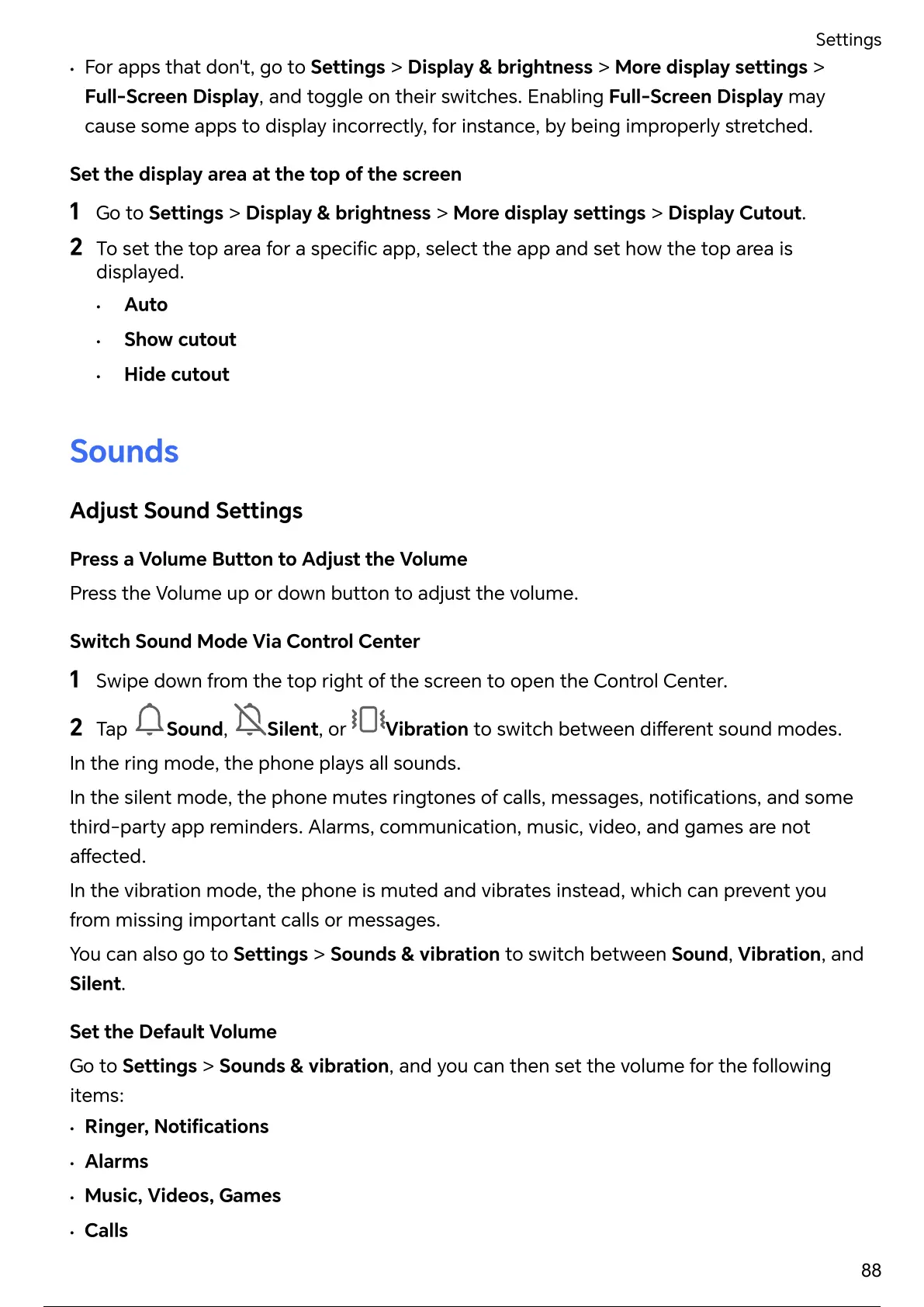 1 Go to Settings > Display & brightness > More display settings > Display Cutout.