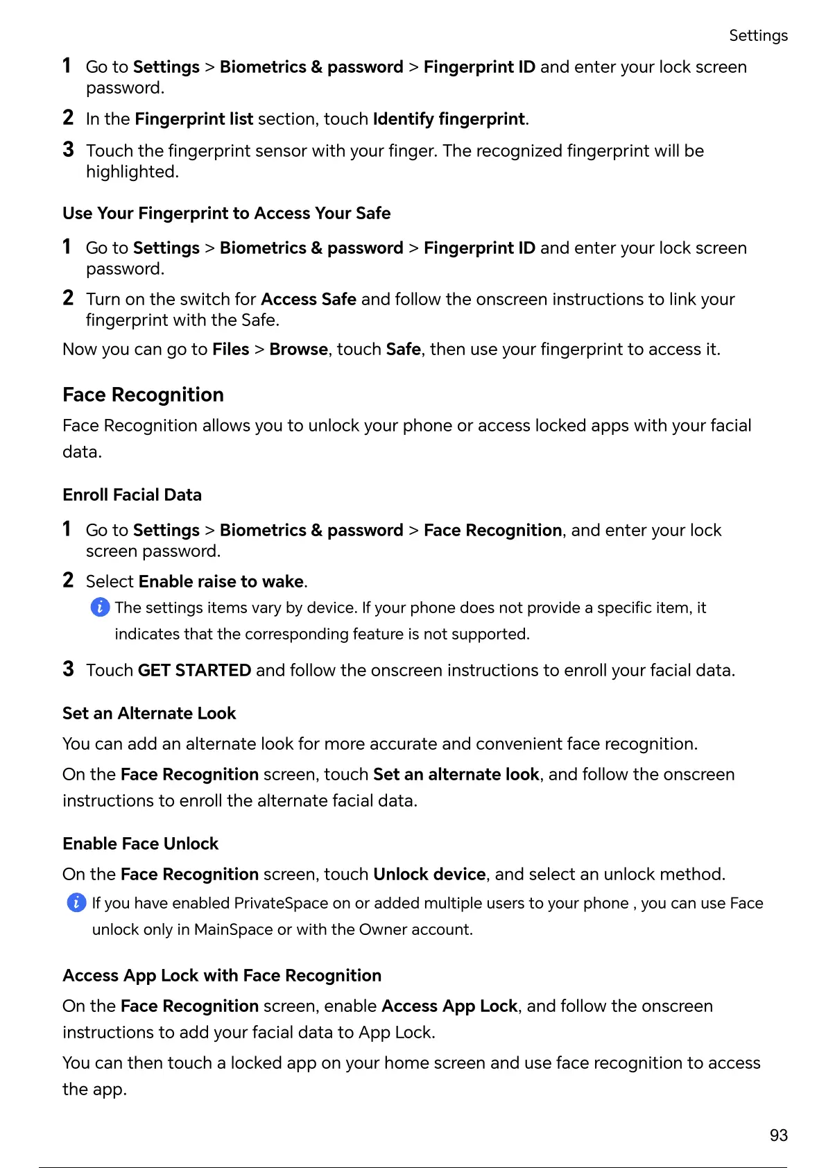 Face Recognition allows you to unlock your phone or access locked apps with your facial