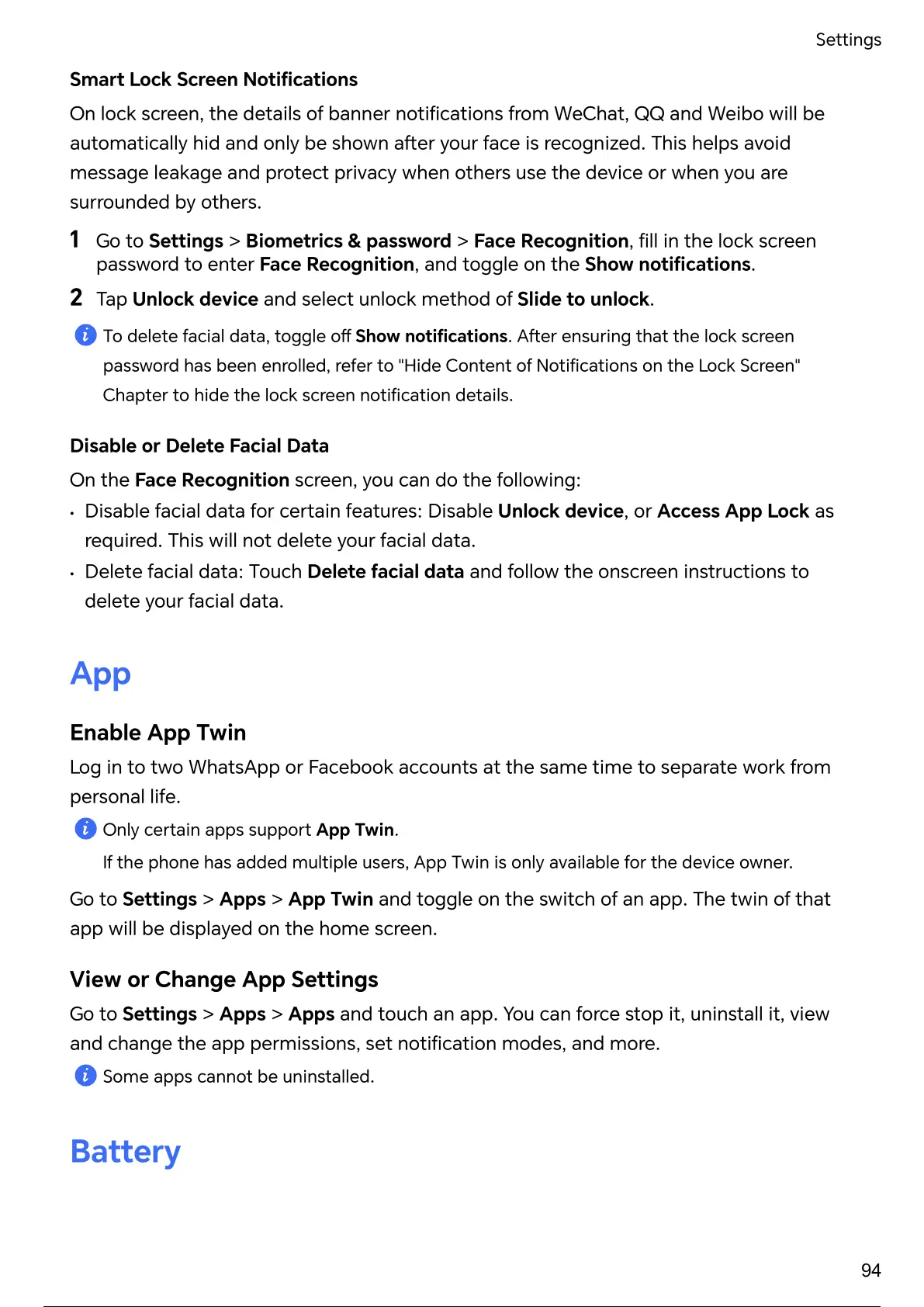 β’ Disable facial data for ξ ξΌξ’ξξξ features: Disable Unlock device, or Access App Lock as