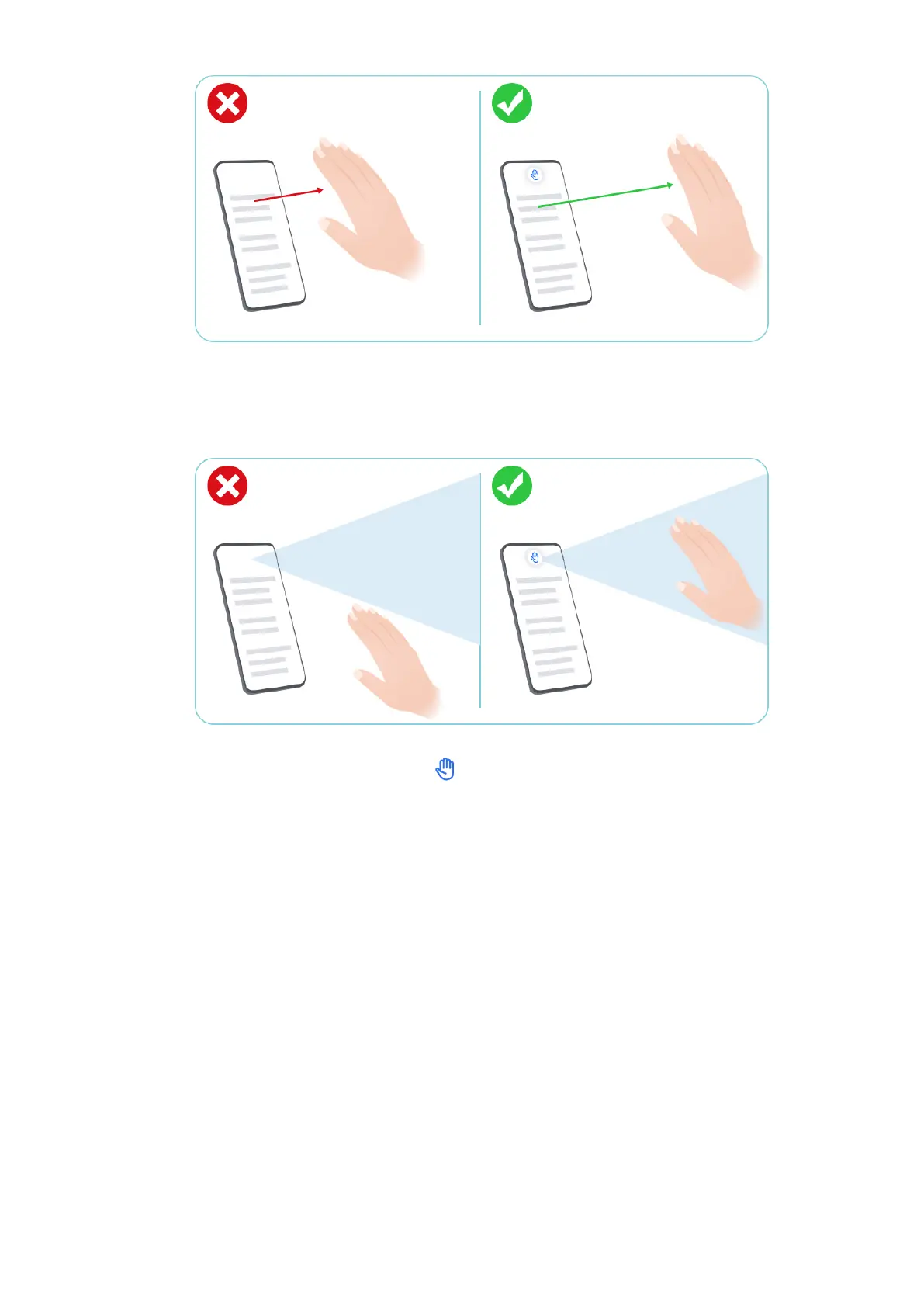 2 Do not hold your hand at an angle to the screen, please keep it straight up directly