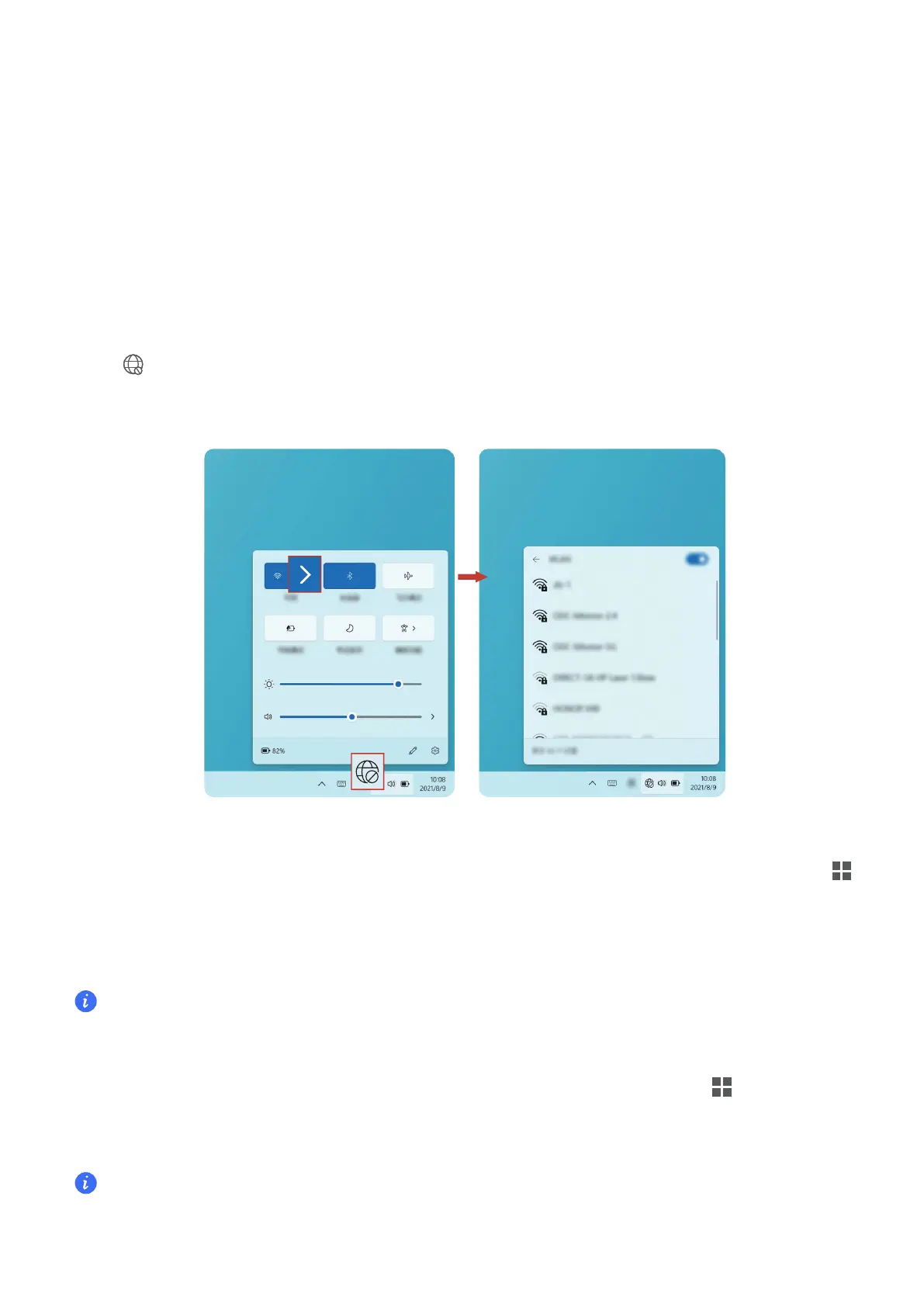 in the lower right corner of the desktop. Select a Wi-Fi network and follow the