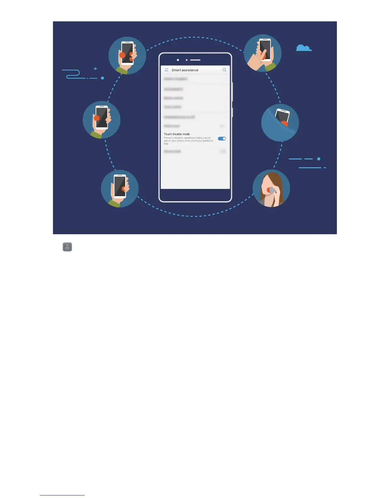 Open Settings, touch Smart assistance, and then enable or disable Touch-disable mode.