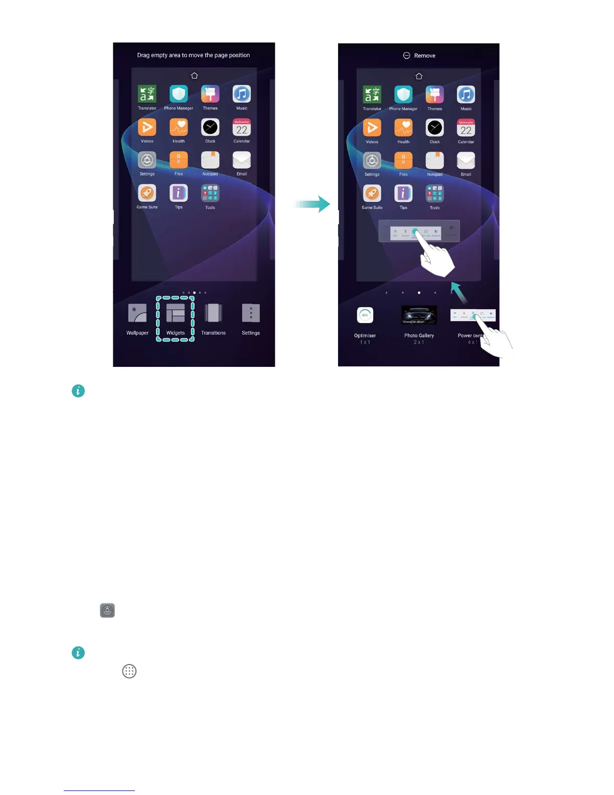 widget to Remove at the top of the screen.