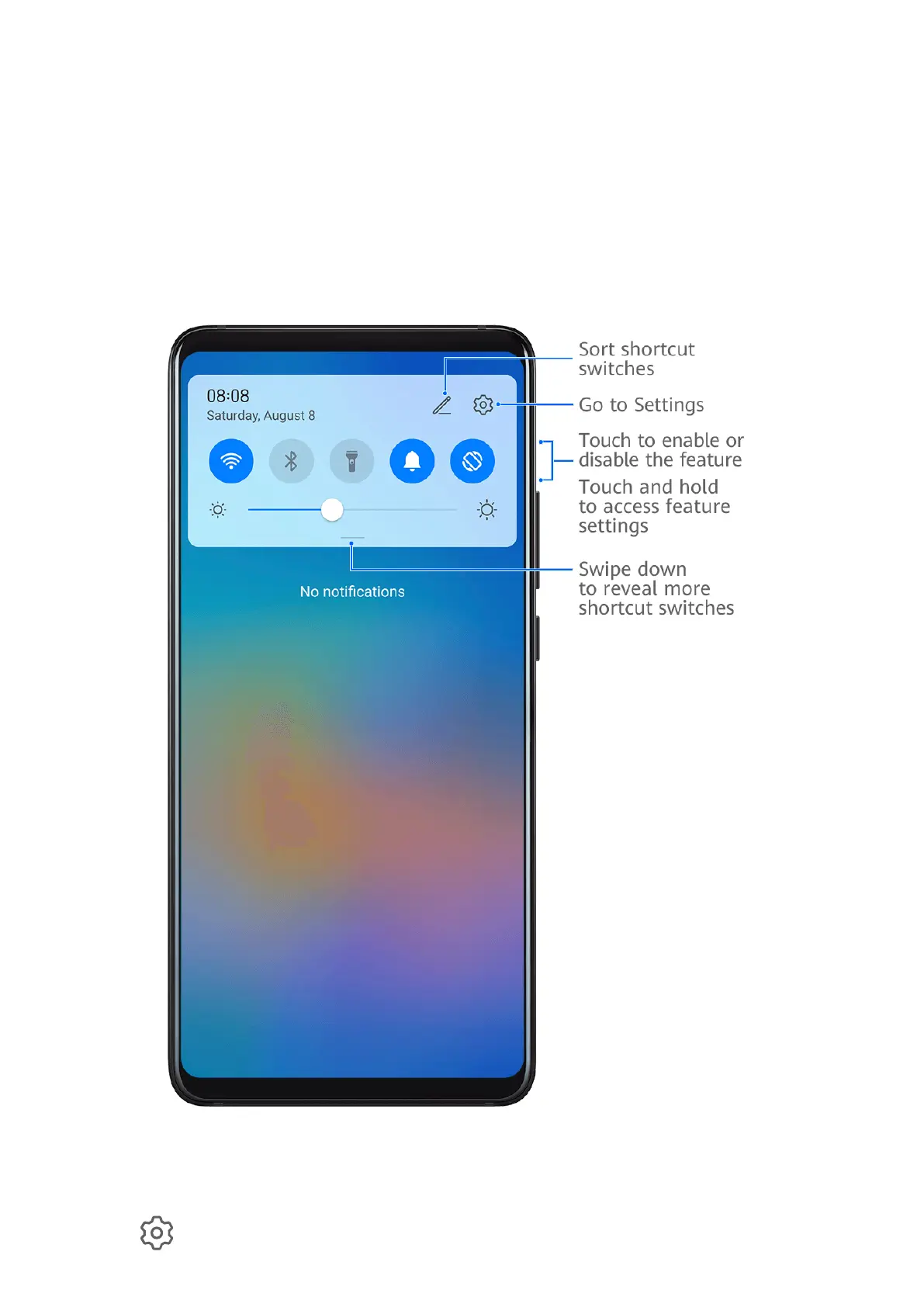 • Touch and hold a shortcut switch to access the settings screen of the corresponding feature.