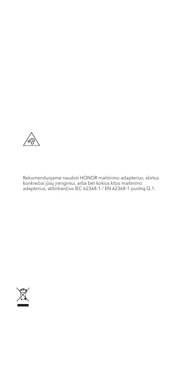 • Rekomenduojame naudoti HONOR maitinimo adapterius, skirtus