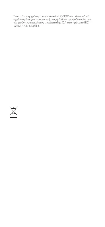 • Συνιστάται η χρήση τροφοδοτικών HONOR που είναι ειδικά