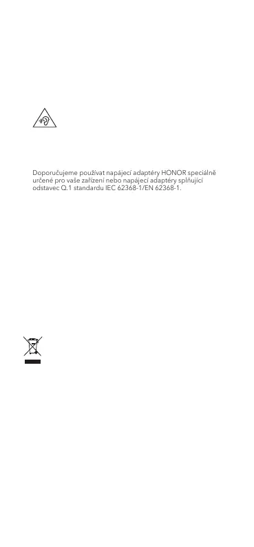 • Doporučujeme používat napájecí adaptéry HONOR speciálně