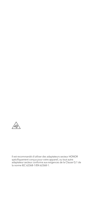 • Il est recommandé d'utiliser des adaptateurs secteur HONOR