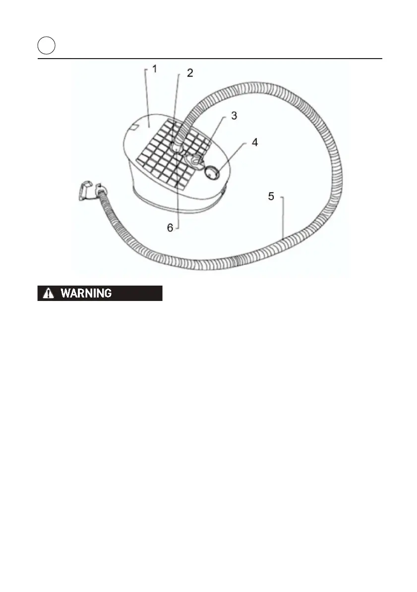 ing hose into connection [4] on the pump and the other end into the boat's valve, operate pump to remove air.