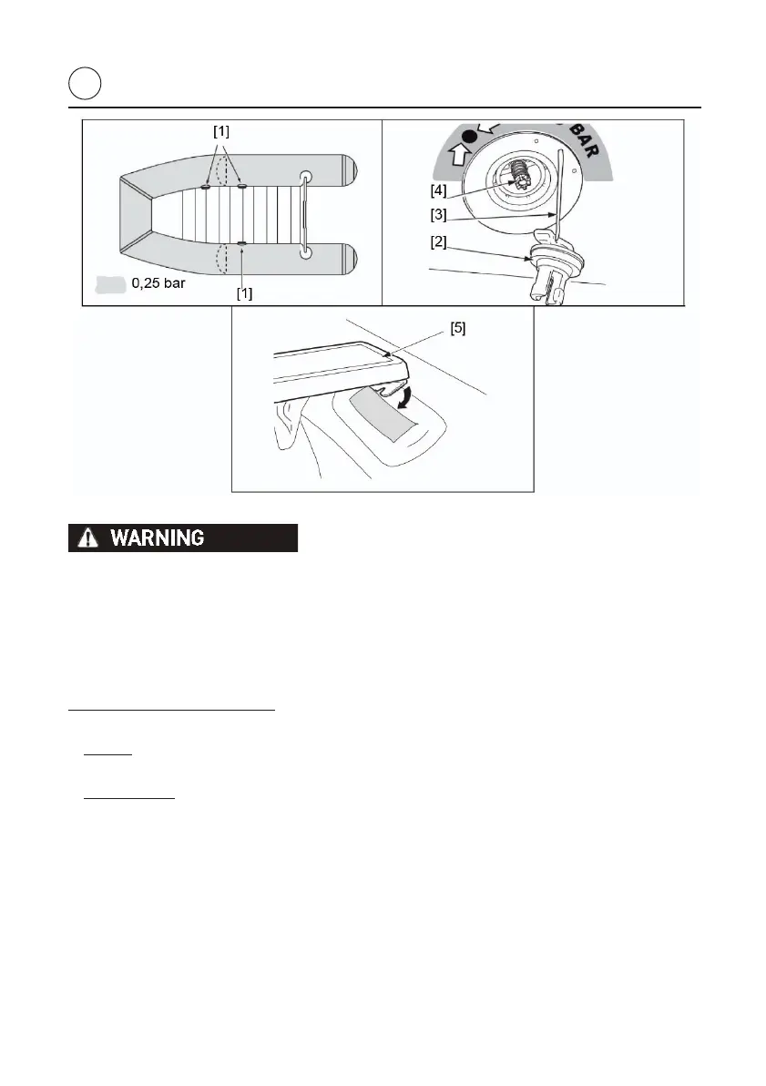 • Check the inflation pressure using the pressure gauge supplied with your boat prior to each use.