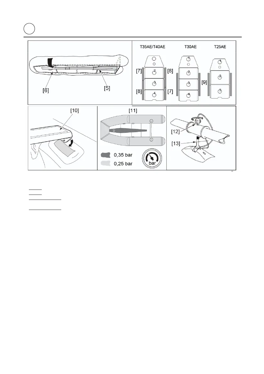 14. Inflate the keel [11] (recommended pressure: 0.35 bar).