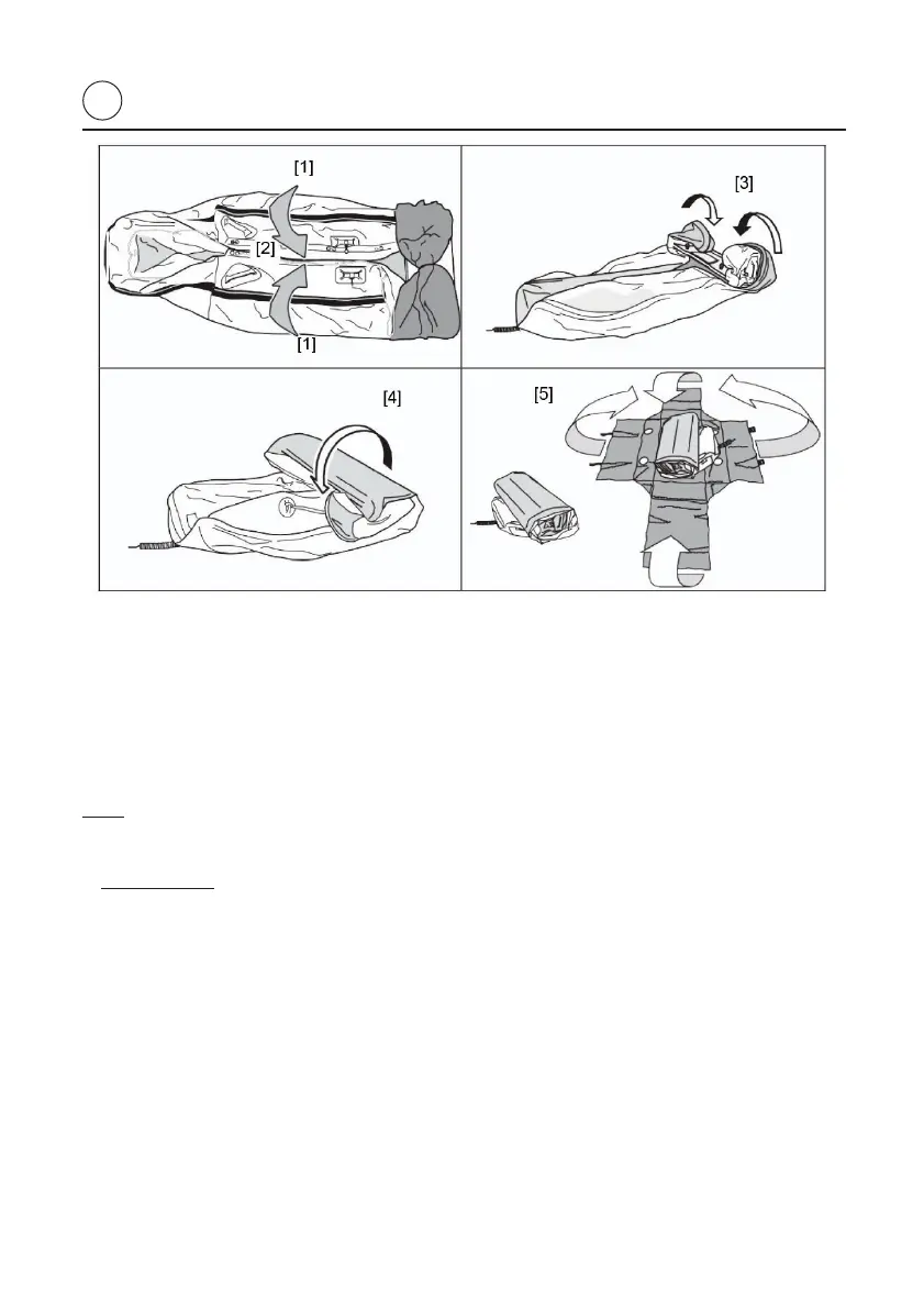 8. Roll the boat up starting from the rear [4] and place it in its transport bag [5] with the air pump.