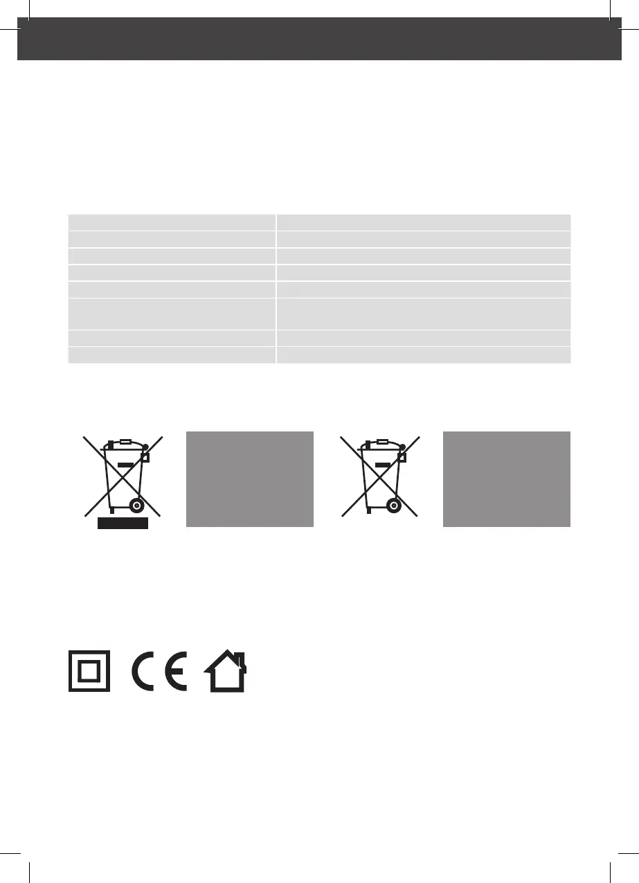 Adattatore di rete: Ingresso: 100-240 V~, 50/60 Hz