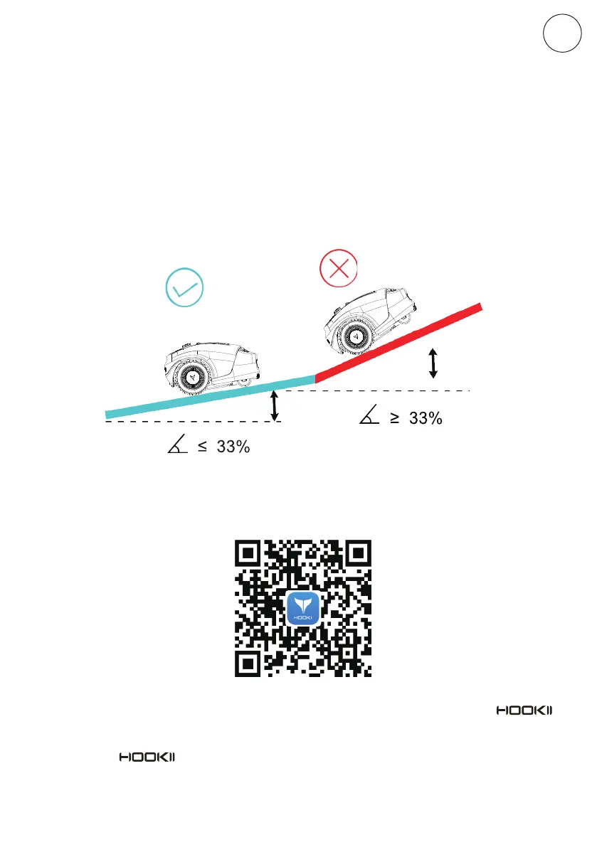 The mower can navigate slopes up to a maximum of 33% or 18° incline or decline.