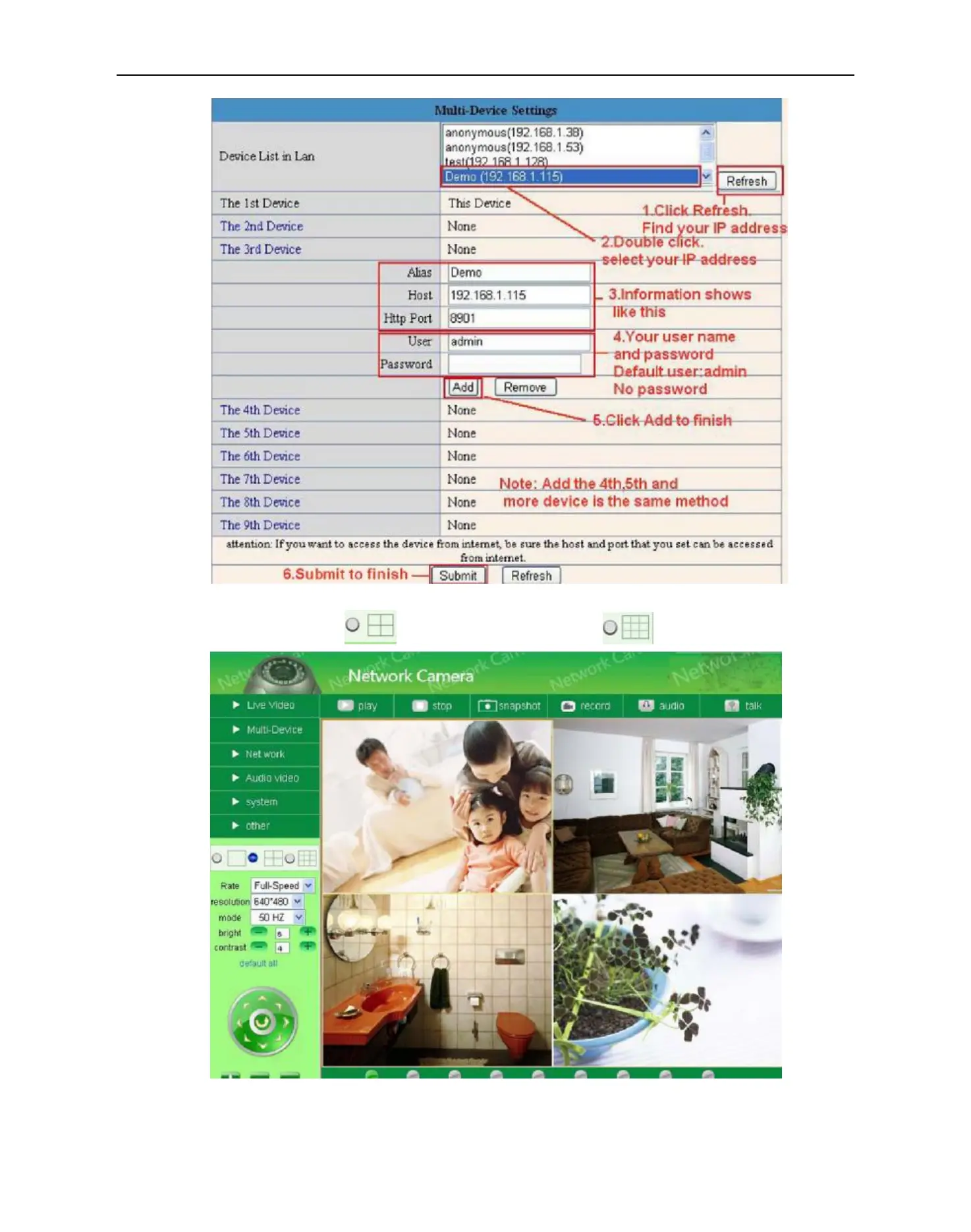 Click Live Video and then select to see four channels, or click to see nine channels.