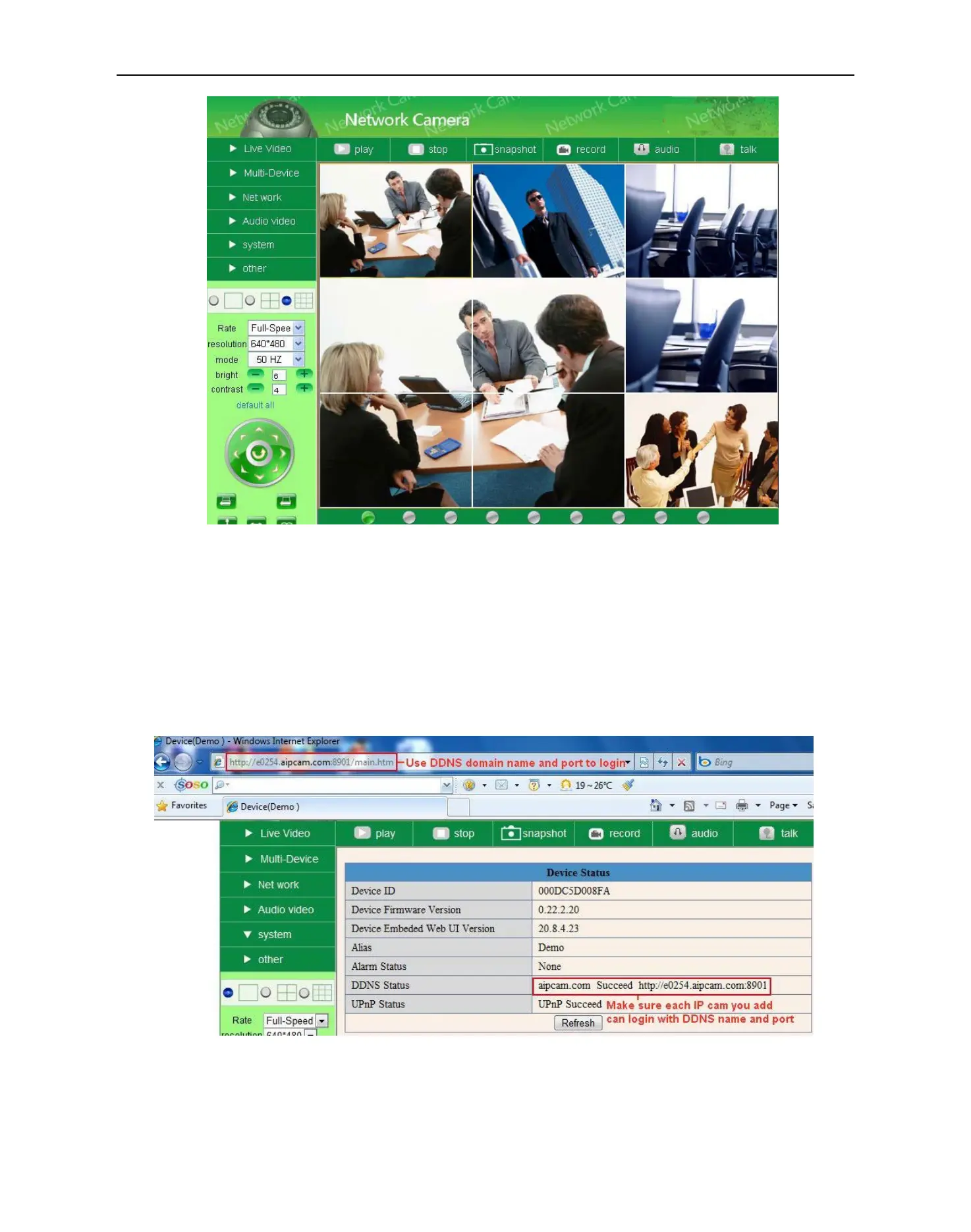 Login the first camera by DDNS domain name and port, this camera will be set as the host camera.