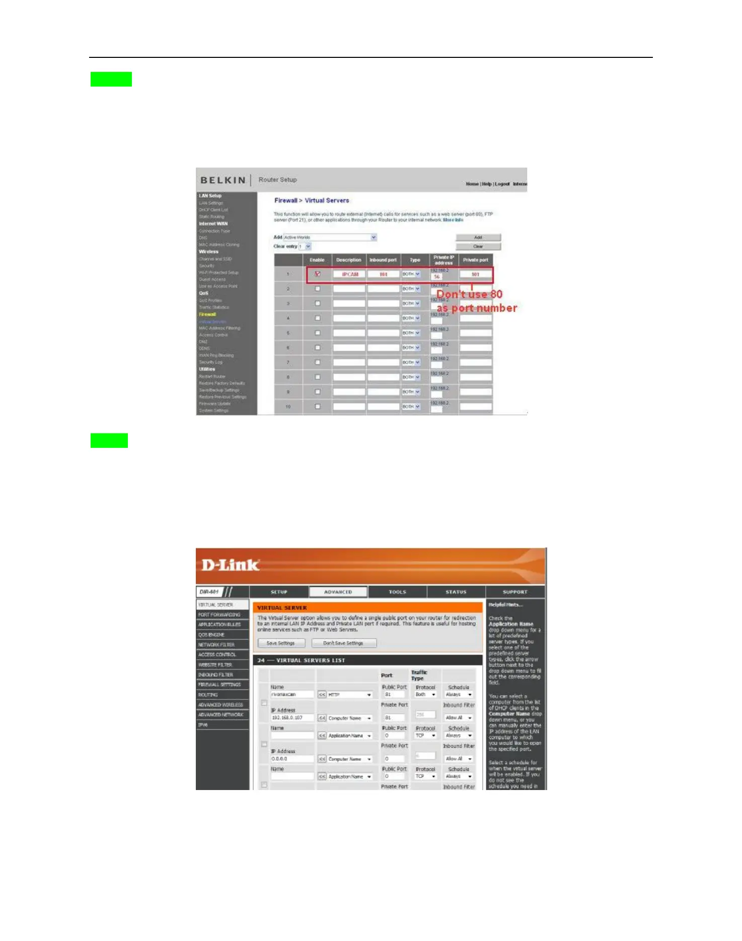 3. Input the port (except 80) and IP address, then click save.