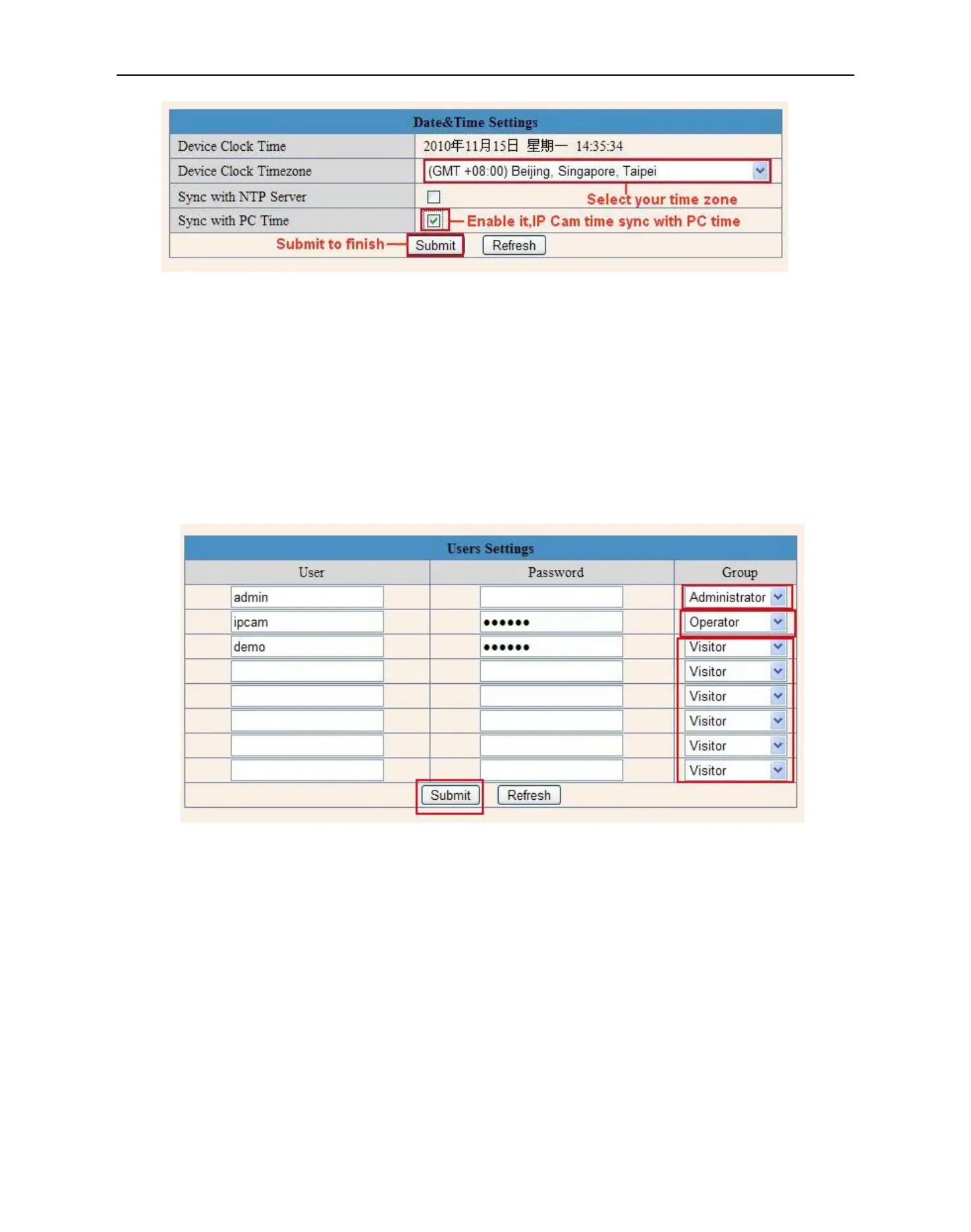 Eight accounts are acceptable for this system. Here you can set the user names and password as