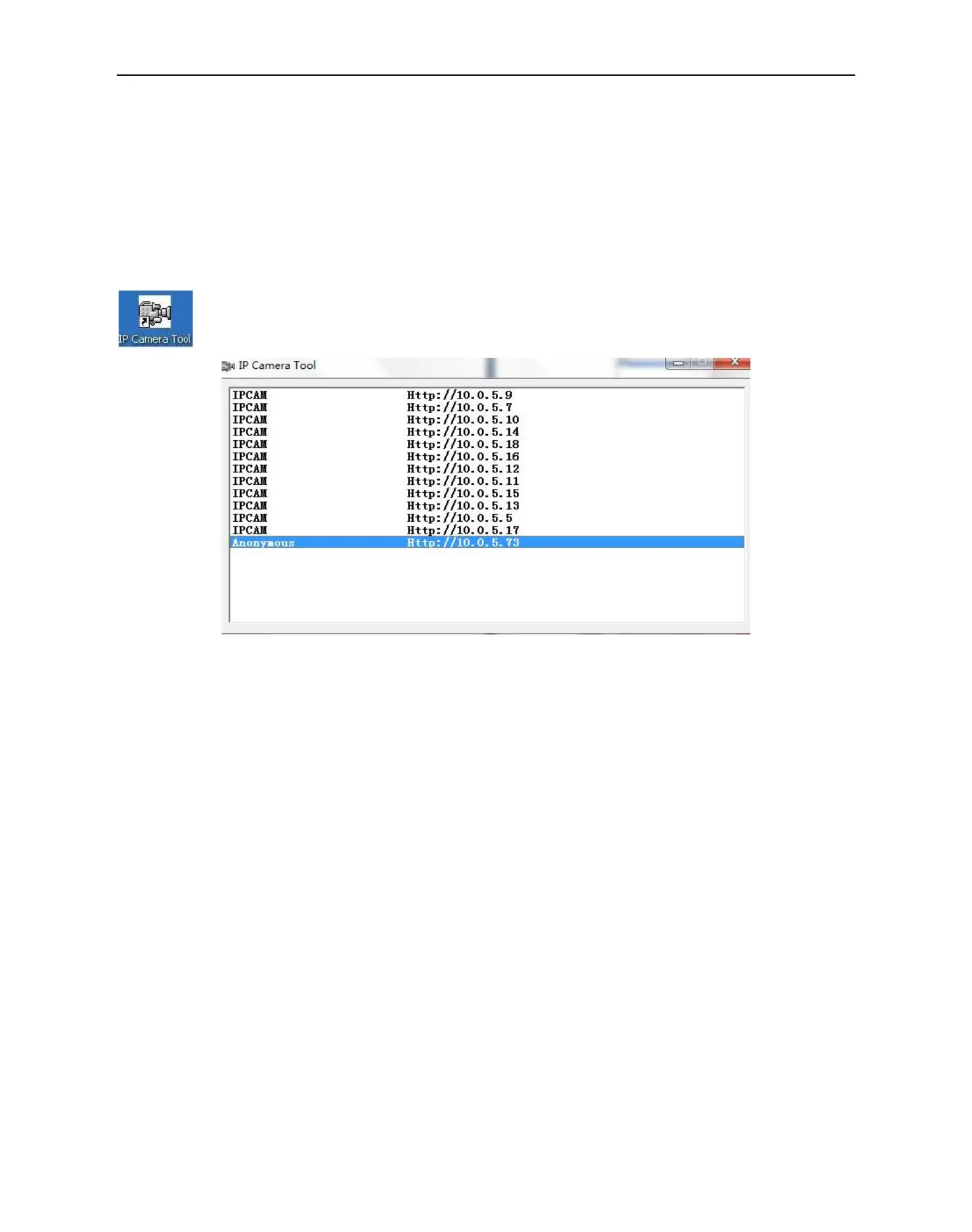 When the camera has been mounted properly, you can double click the Icon “IP Camera Tool”