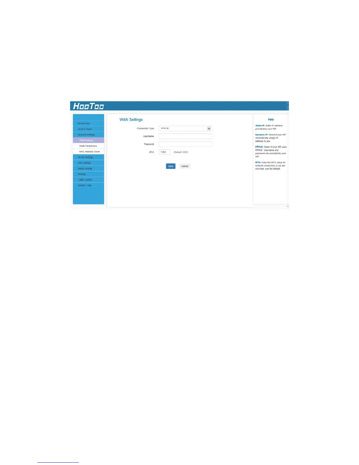 1. Internet Connection Type: PPPoE.