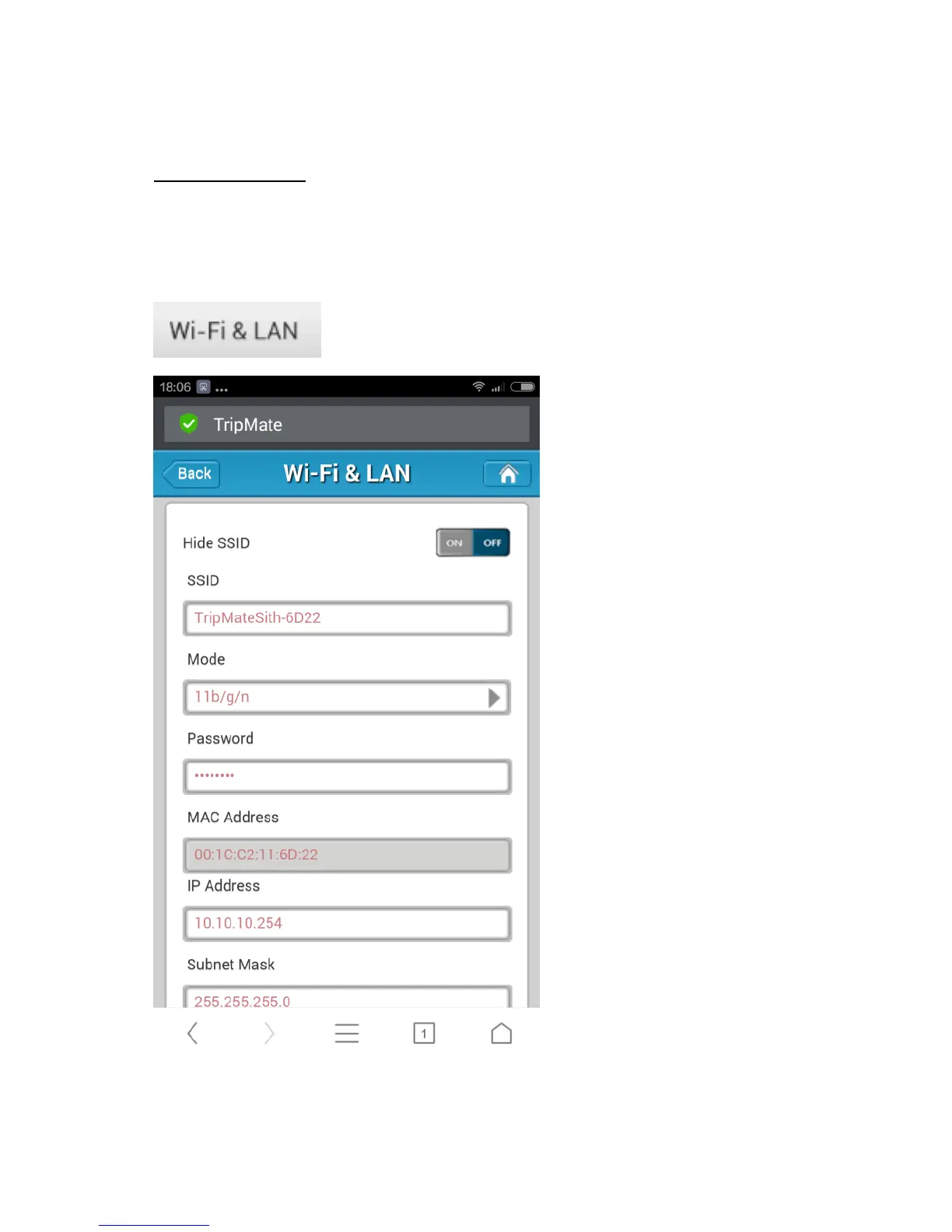 To change the SSID name and password of TripMate, please follow the