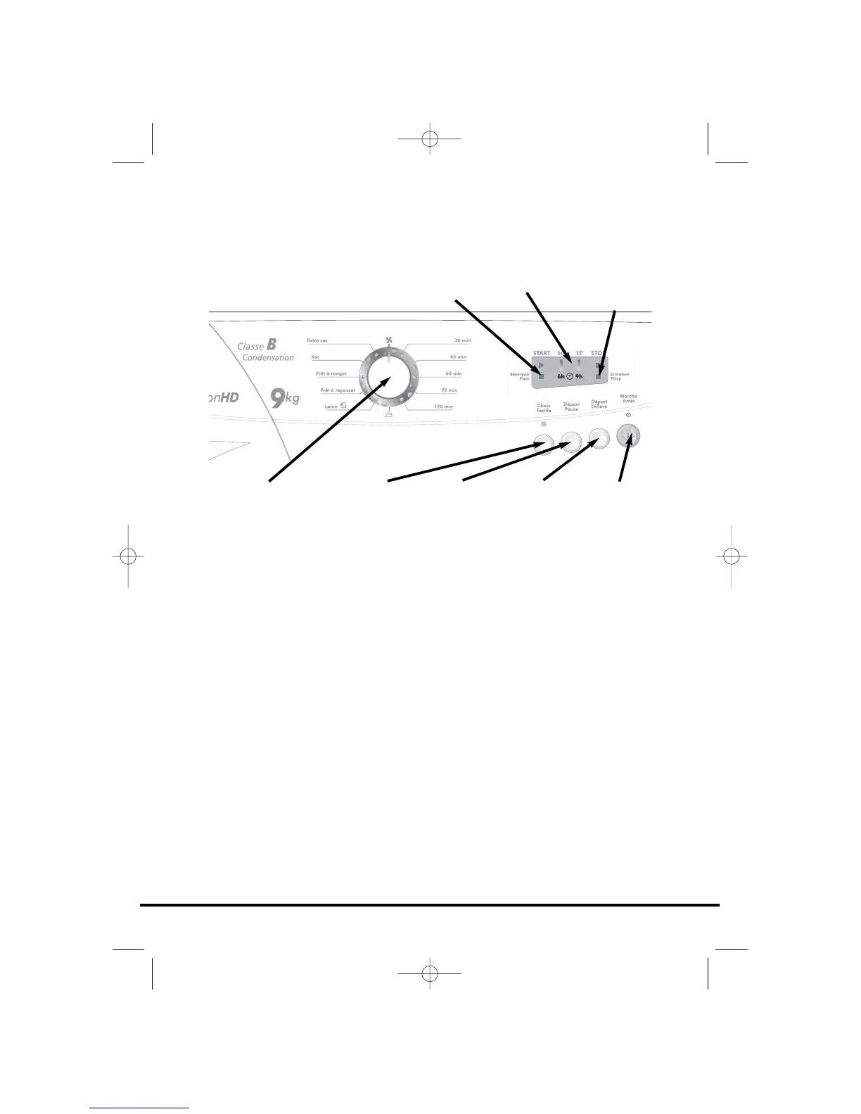 Bouton Départ Pause – appuyez sur ce bouton pour lancer le programme de séchage