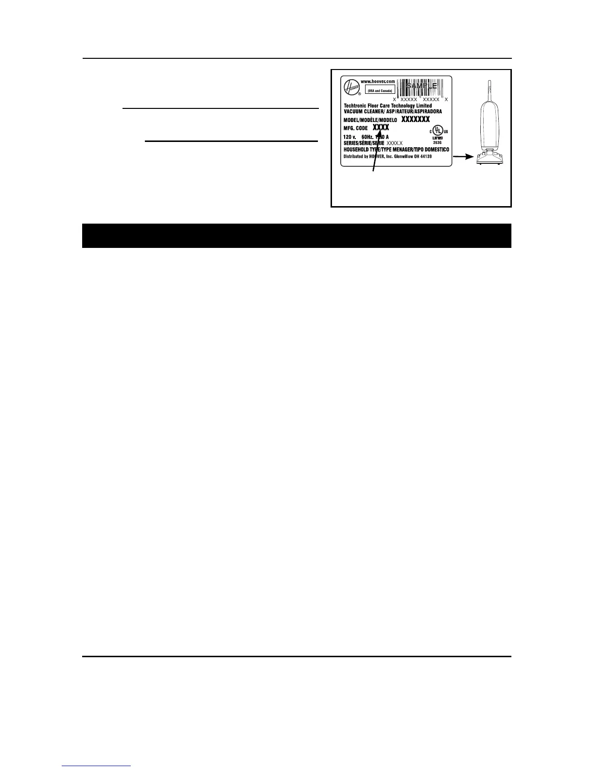 Be sure to register your product online at hoover.com or