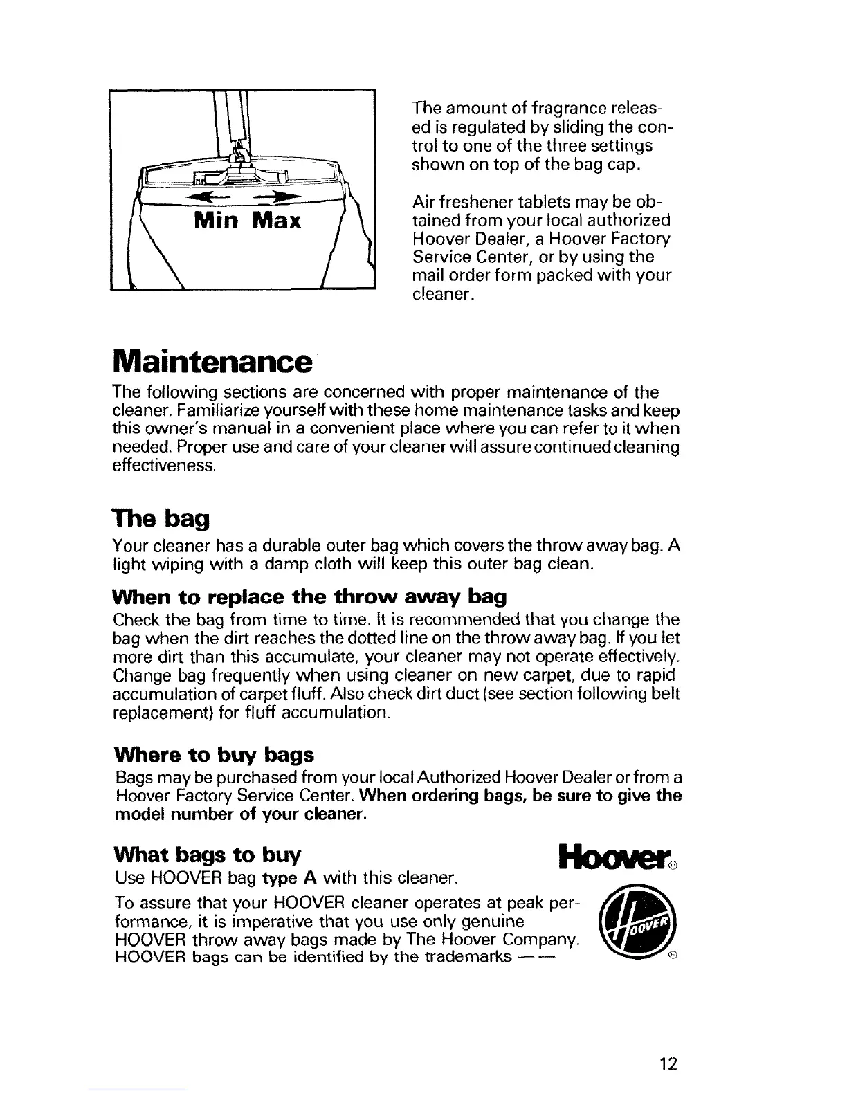 Bags may be purchased from your local Authorized Hoover Dealer or from a