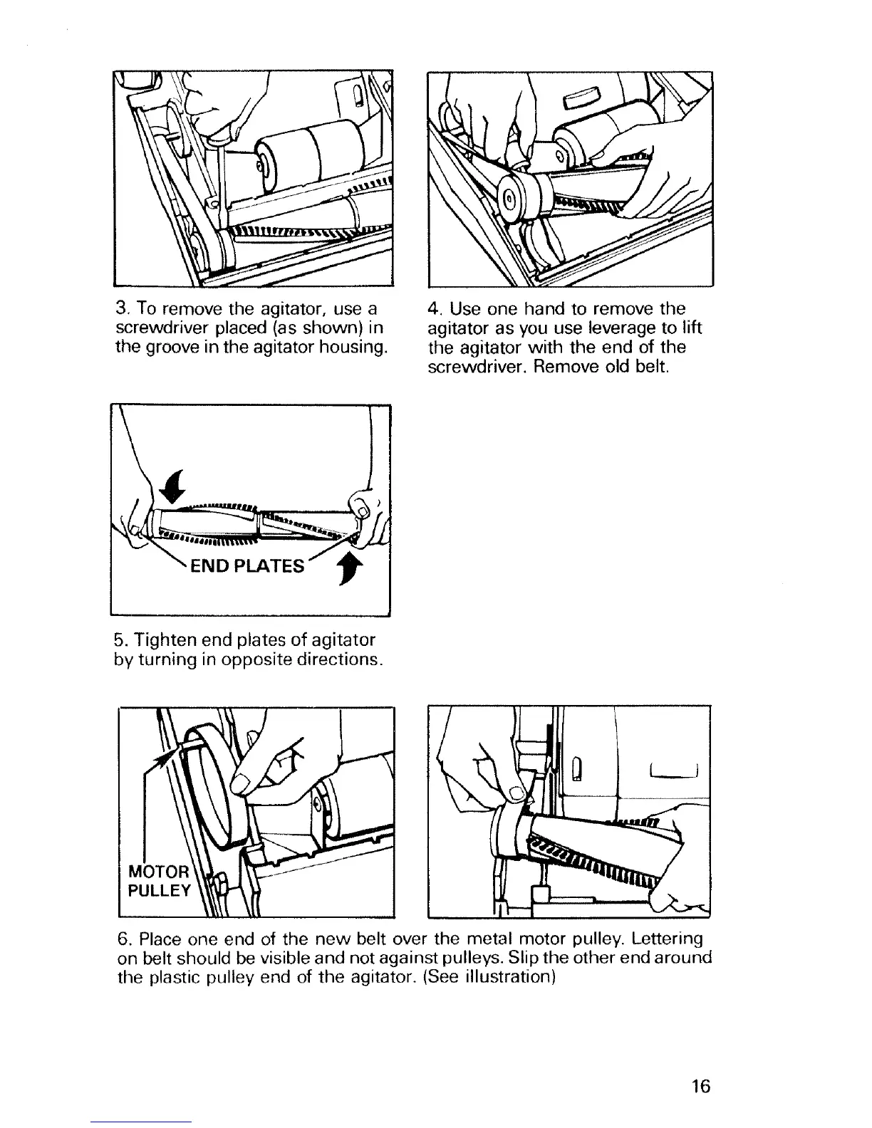 6. Place one end of the new belt over the metal motor pulley. Lettering