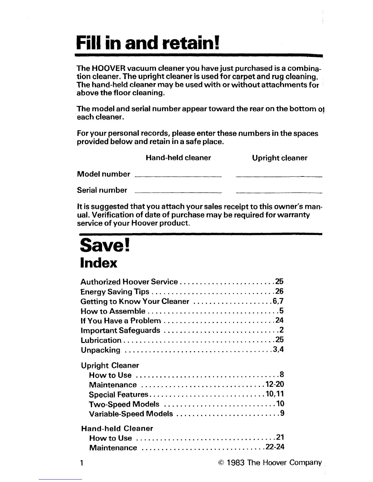 The HOOVER vacuum cleaner you have just purchased isa combina-