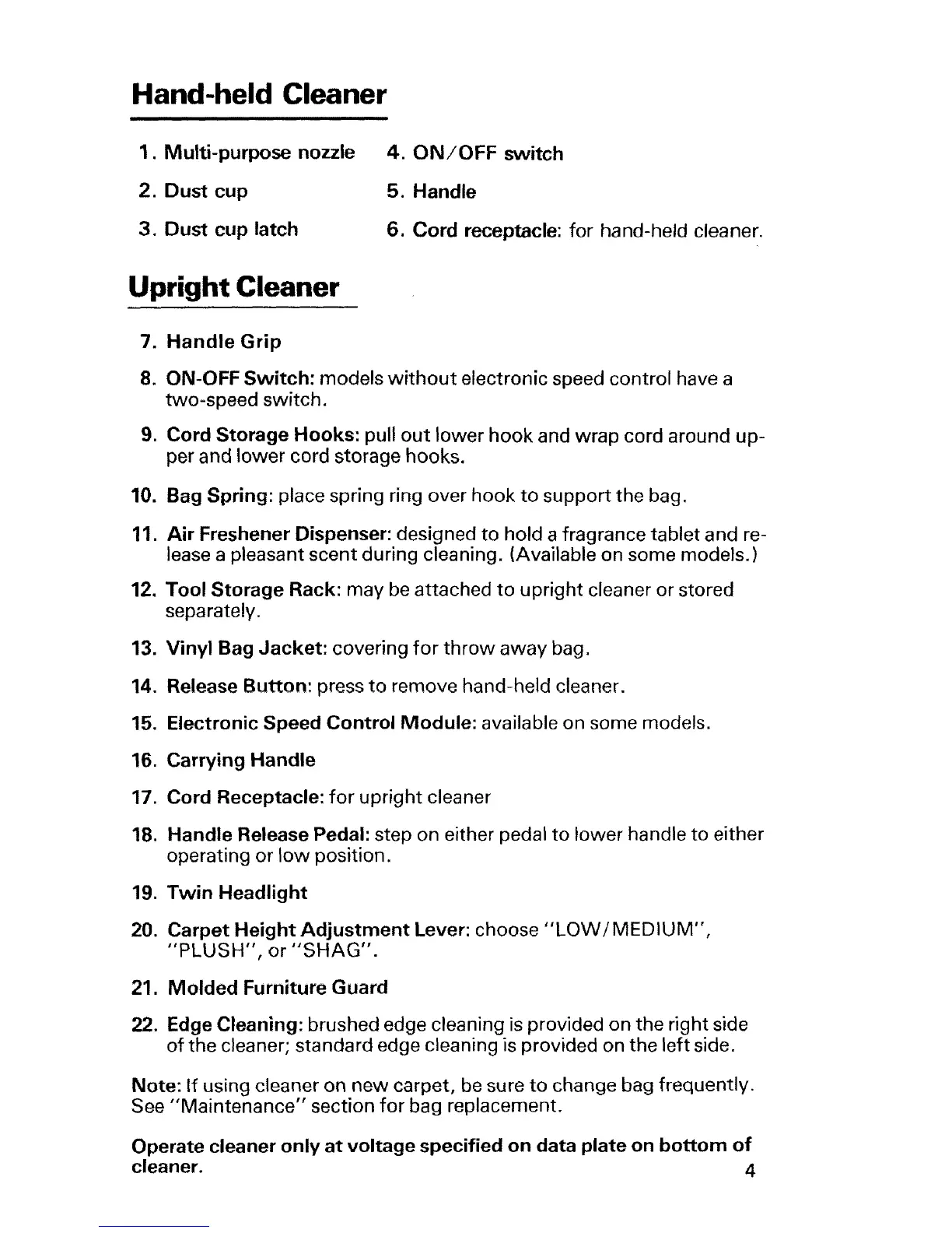 Note: If using cleaner on new carpet, be sure to change bag frequently.