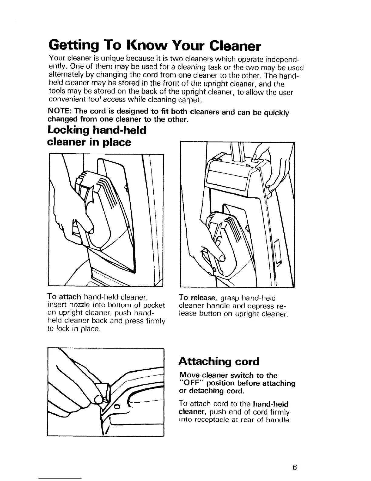 NOTE: The cord is designed to fit both cleaners and can be quickly