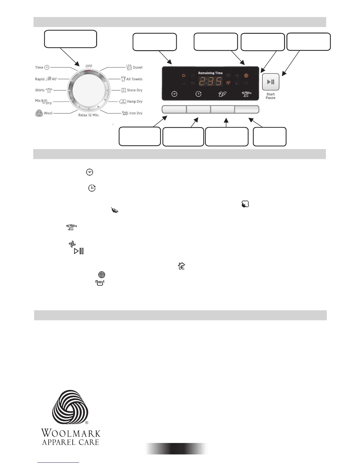 Programmet för torktumling av ull I denna maskin har blivit godkänd av The