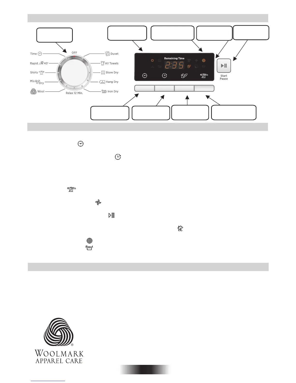 βαθμό στεγνώματος που επιθυμείτε. Για μικρά φορτία ή ρούχα που είναι σχεδόν στεγνά ,είναι σκόπιμο να επιλέγετε ένα