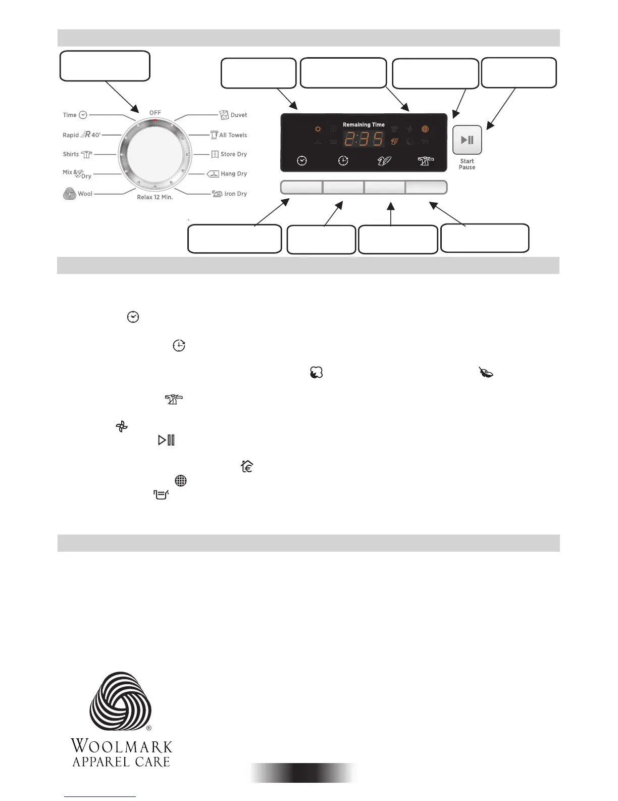 The Woolmark Company on hyväksynyt tämän koneen villan kuivausohjelman