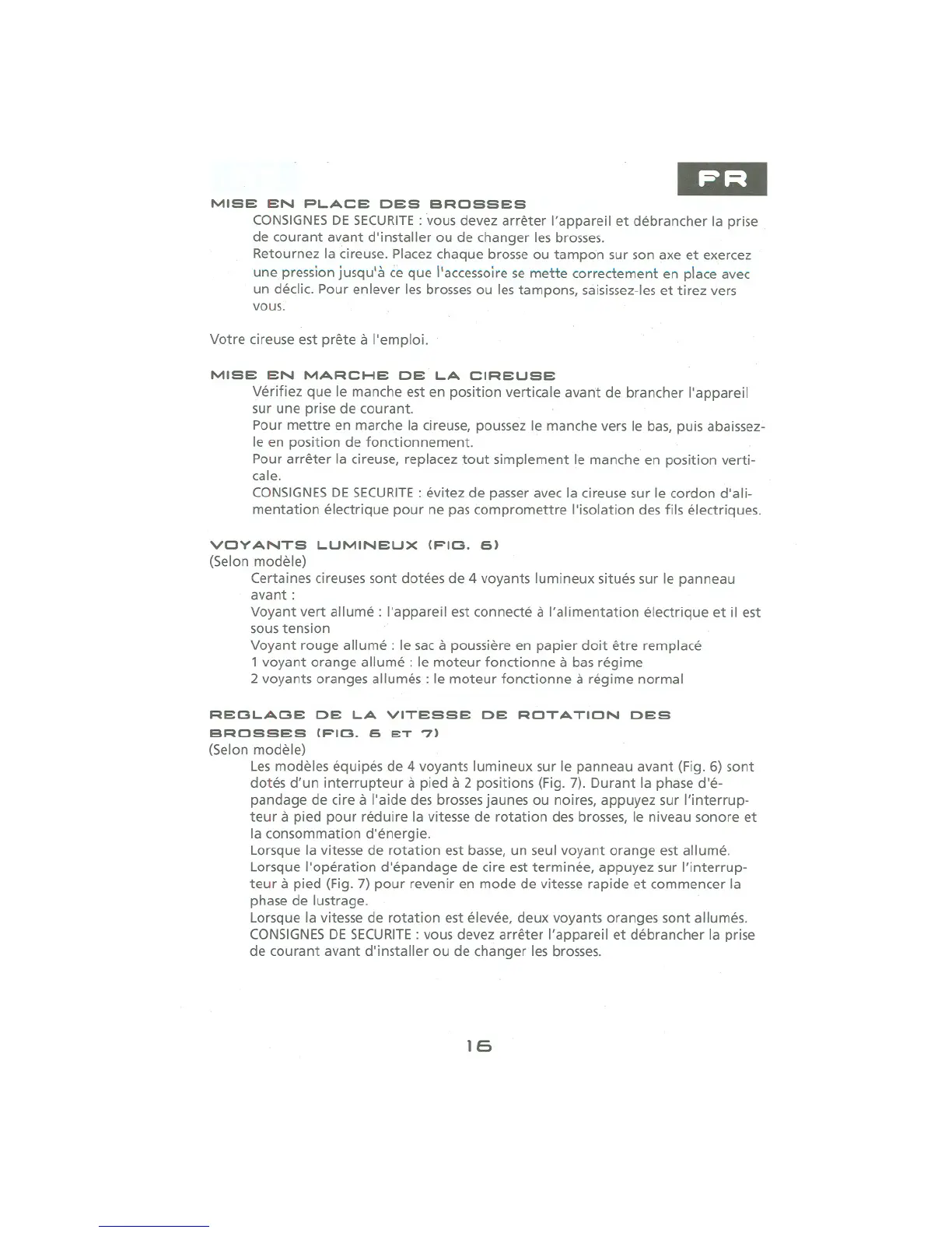 pandage de cire à l'aide des brossesjaunes ou noires, appuyez sur l'interrup-
