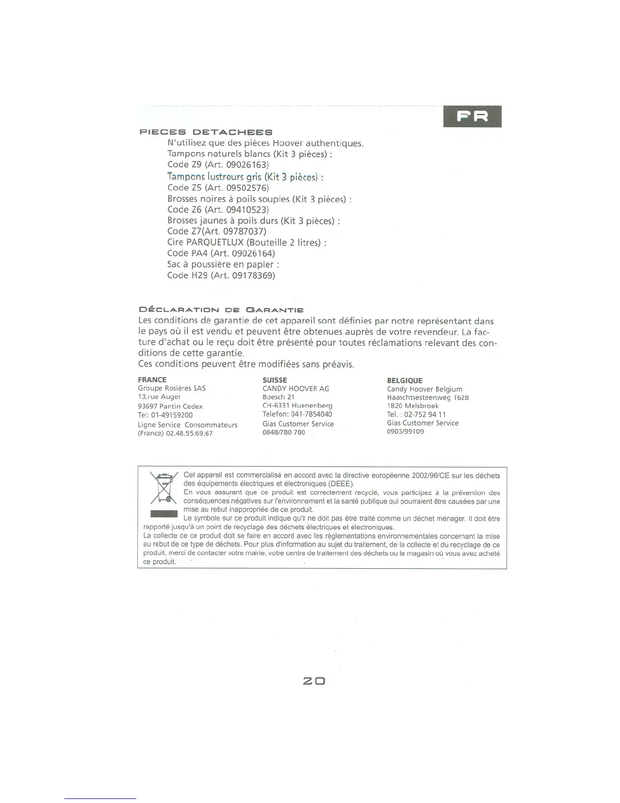 produit, merci de contacter votre mairie, votre centre de traitement des déchets ou le magasin où vous avez acheté