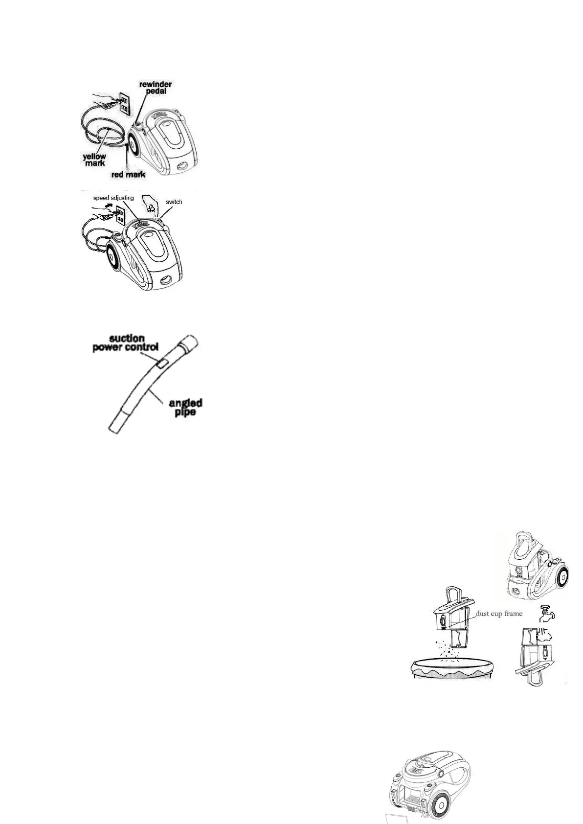● pick up the dust container