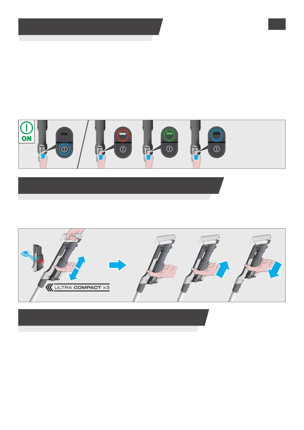 4. Tenere il Cursore del Contenitore Raccoglipolvere ULTRA COMPACT X3 e muoverlo verso l’alto e verso