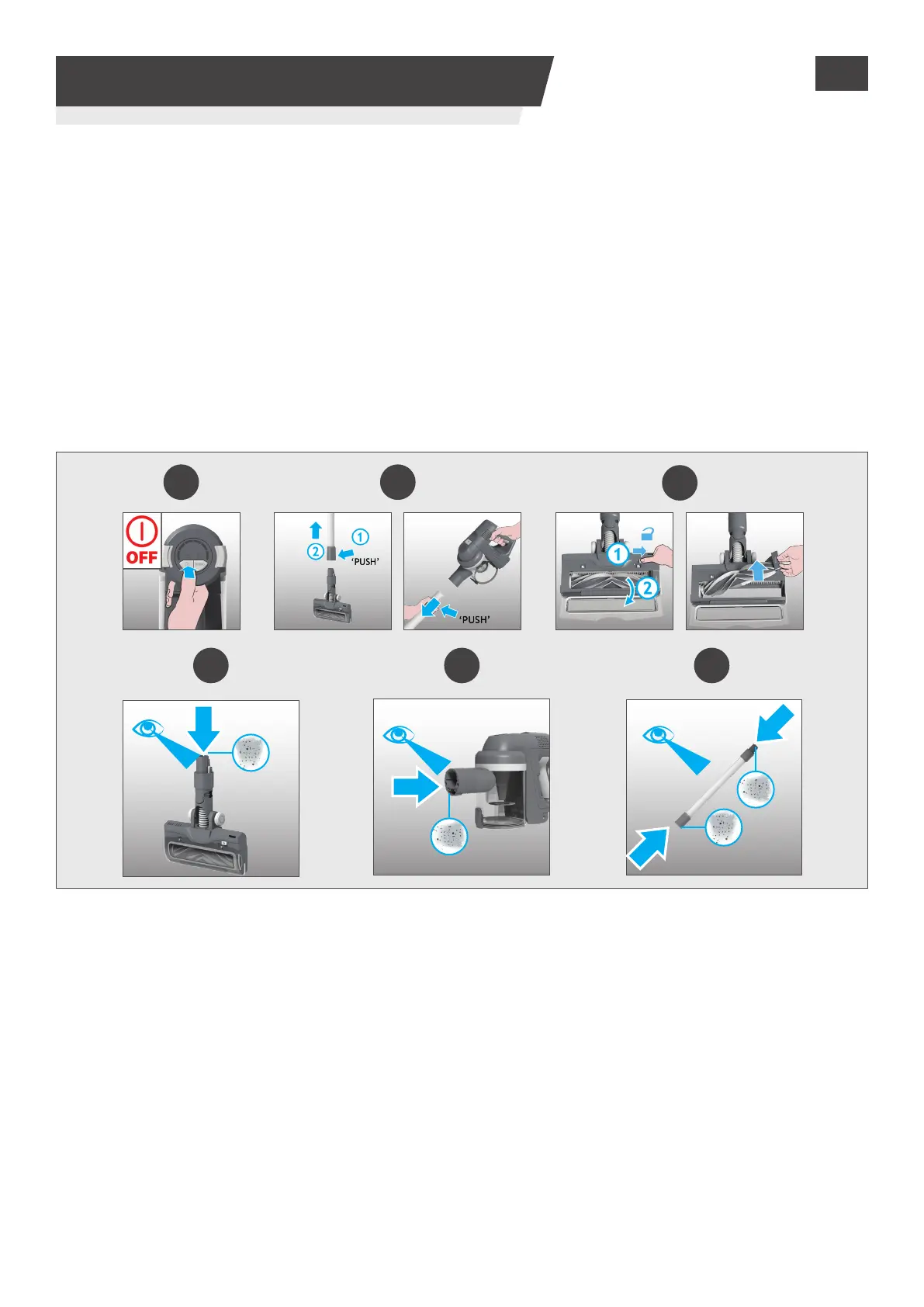 2. Отделите насадку для пола, трубку и ручной блок в соответствии с предыдущими инструкциями.
