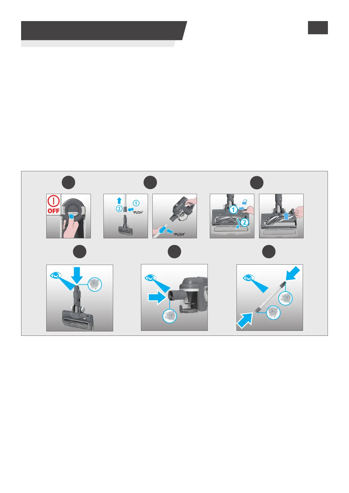 2. Oddělte podlahovou hubici, trubici a ruční jednotku podle předchozích pokynů.