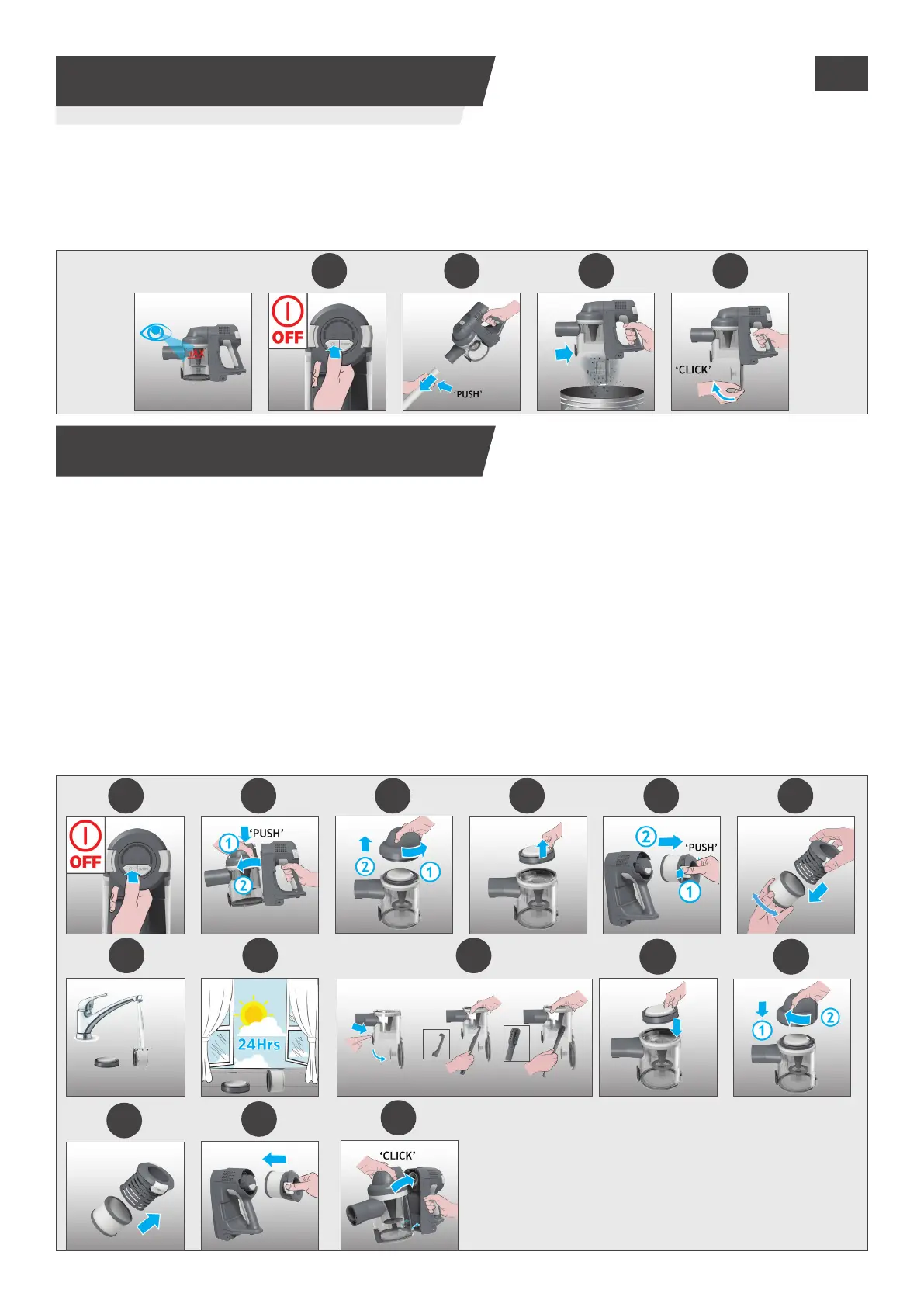 13. Izpušni lter ponovno namestite na ročno enoto in se prepričajte, da je zaklenjen na svojem mestu.