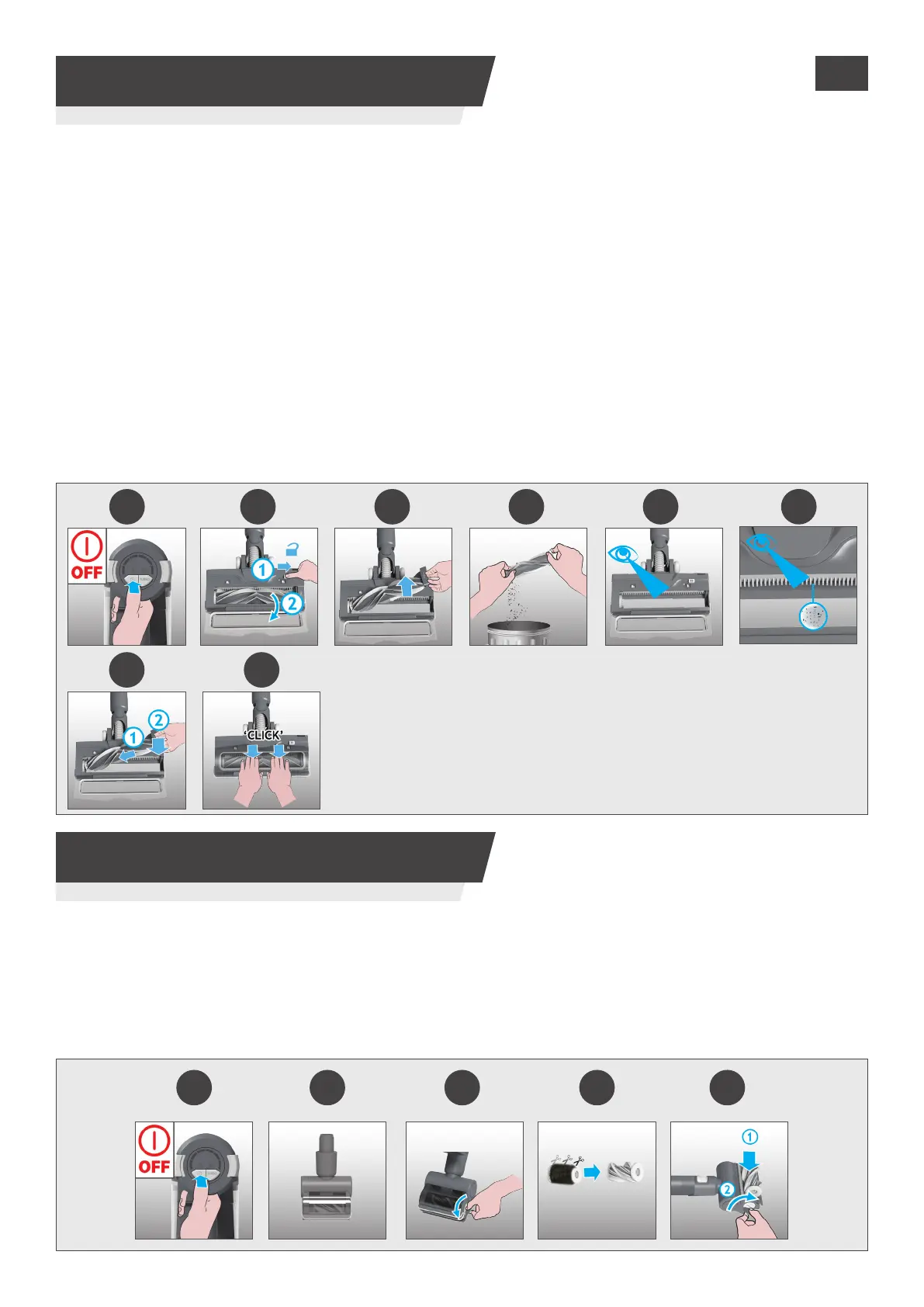 6. Bringen Sie die Bürstenwalze wieder an, drücken Sie auf den Schnappverschluss und verriegeln Sie