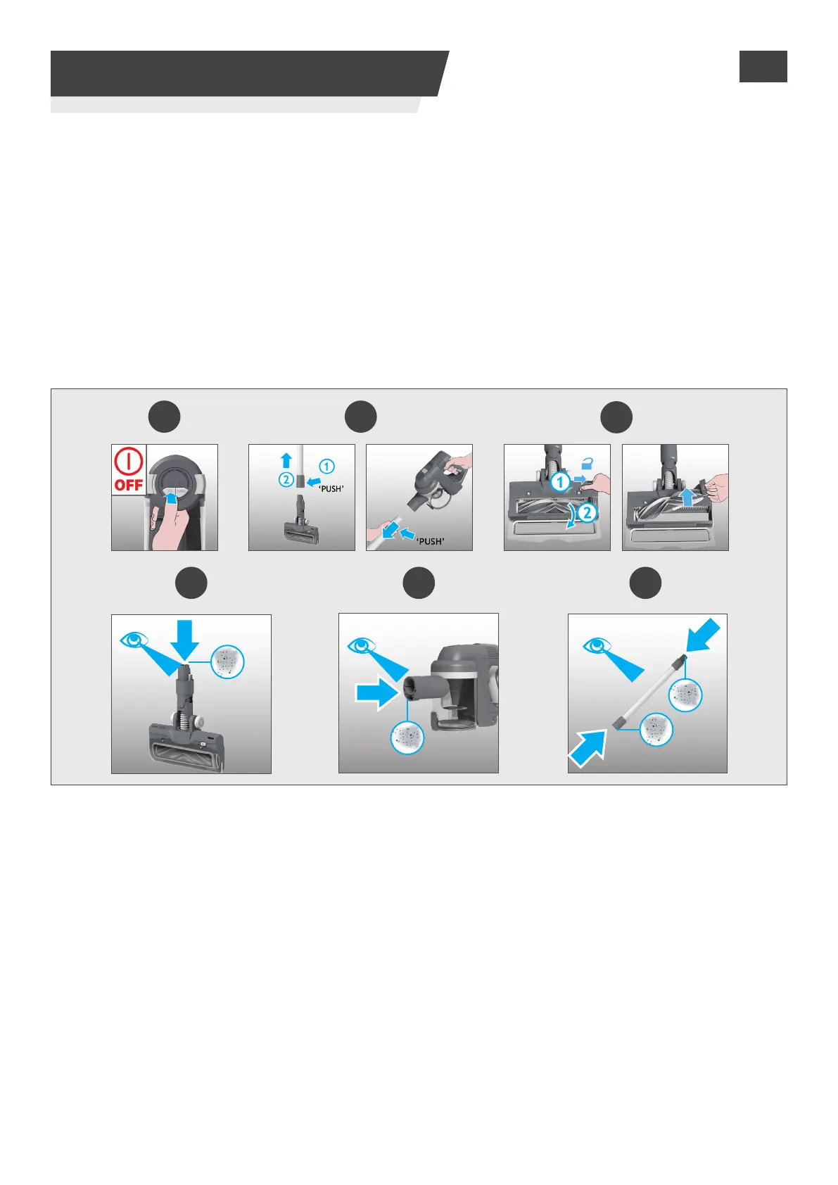 2. Separare la spazzola per pavimenti, il tubo e l’unità portatile come da precedenti istruzioni.